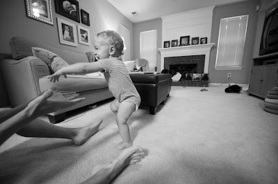 Yesterday he was 'taking off' on multiple occasions, from our ottoman to a toy, from a toy to a chair, from Jonah to our ottoman....and on it goes. He was so funny to watch! Even though he missed his regular naps (church) he was so wound up from his newfound freedom. Our sweet boy is getting so big.